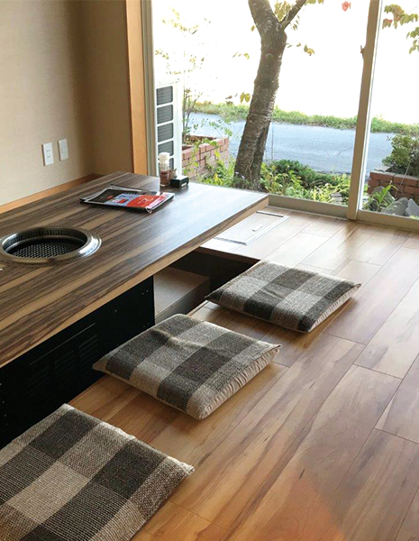 A table with a nice view. Our shop is located right next to the beautiful Nagara River.